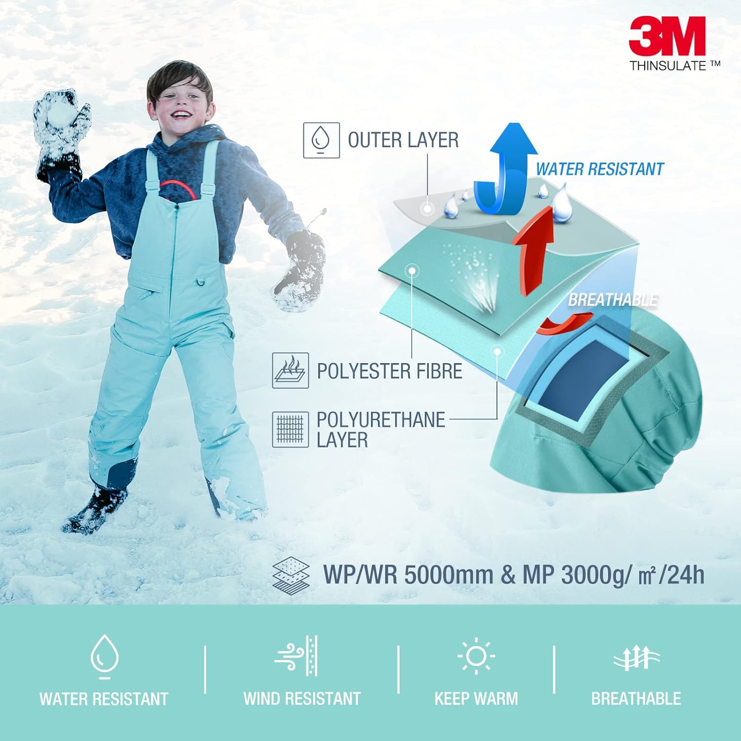HISEA Kids Insulated Bibs Snow Bib Overalls Winter Warm Ski Bibs for Girls and Boys Ski Pants Water Resistant Skiing Bibs