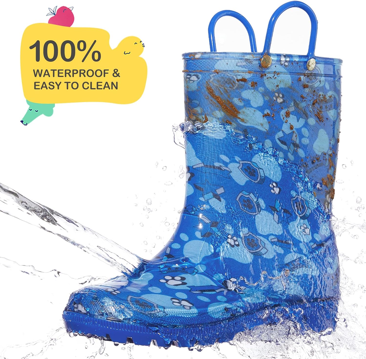 HISEA Kids Rain Boots for Toddler Boys Girls, Waterproof Rubber Boots with Easy-On Handles, Seamless PVC Rainboots Lightweight Mud Shoes for Water Beach Outdoor Playing (Toddler/Little Kid/Big Kid)(Blue Dog Paw)