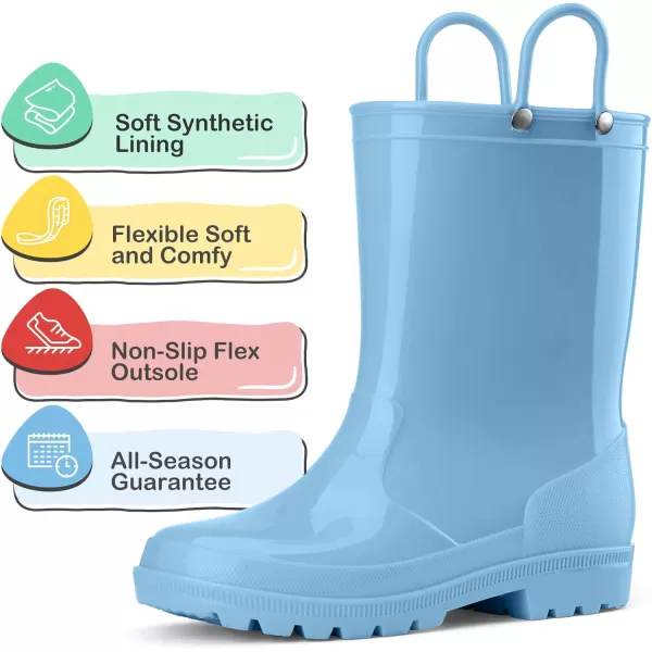HISEA Kids Rain Boots for Toddler Boys Girls, Waterproof Rubber Boots with Easy-On Handles, Seamless PVC Rainboots Lightweight Mud Shoes for Water Beach Outdoor Playing (Toddler/Little Kid/Big Kid)(Light Blue)