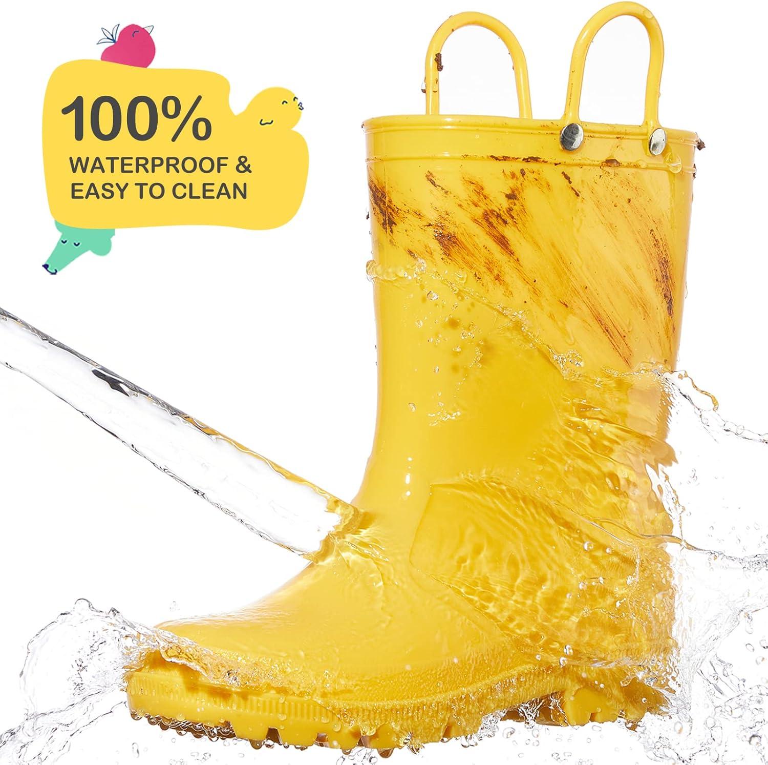 Get up to 50% off on HISEA Kids Rain Boots for Toddler Boys Girls, Waterproof Rubber Boots with Easy-On Handles, Seamless PVC Rainboots Lightweight Mud Shoes for Water Beach Outdoor Playing (Toddler/Little Kid/Big Kid)(Yellow) styles during our spring sale event.