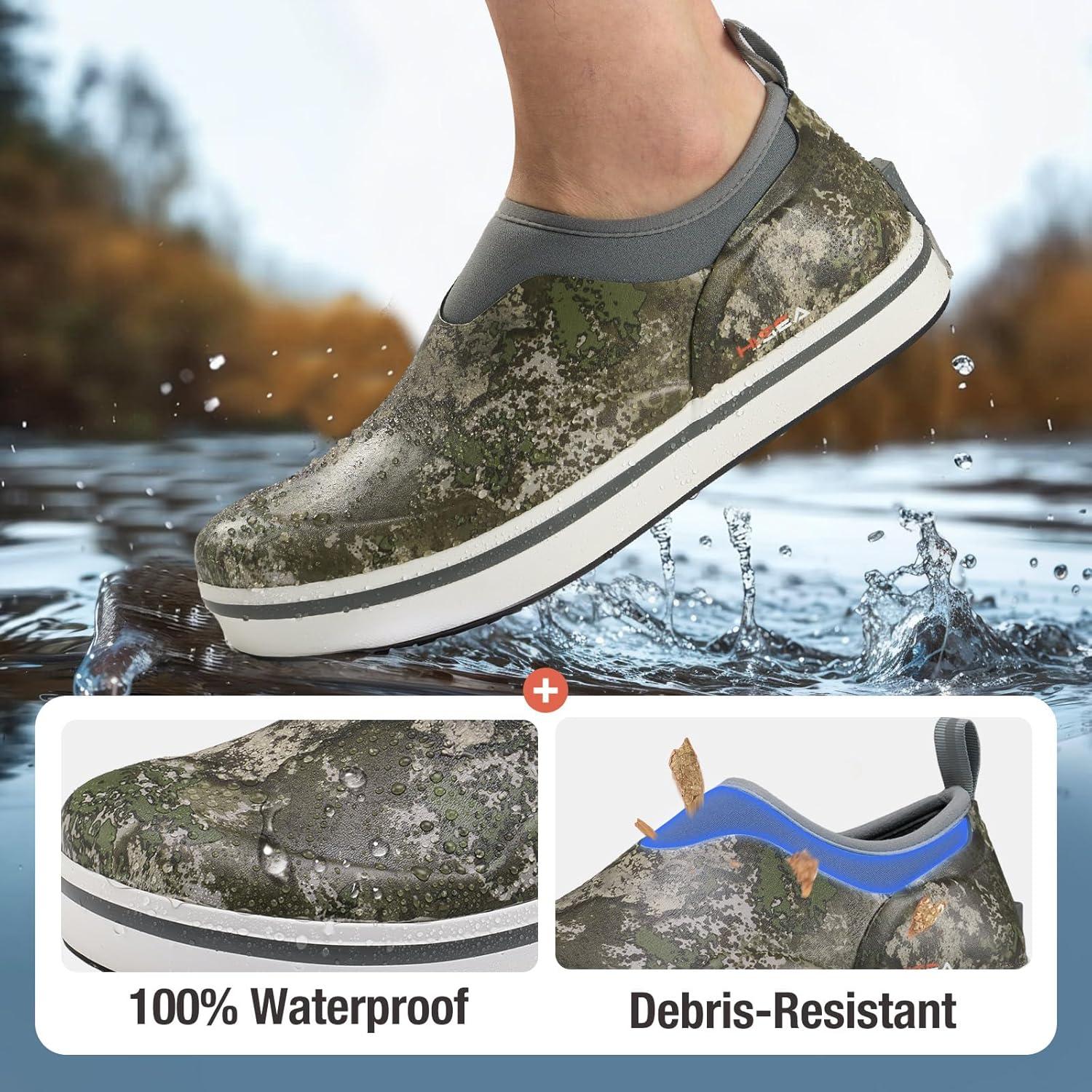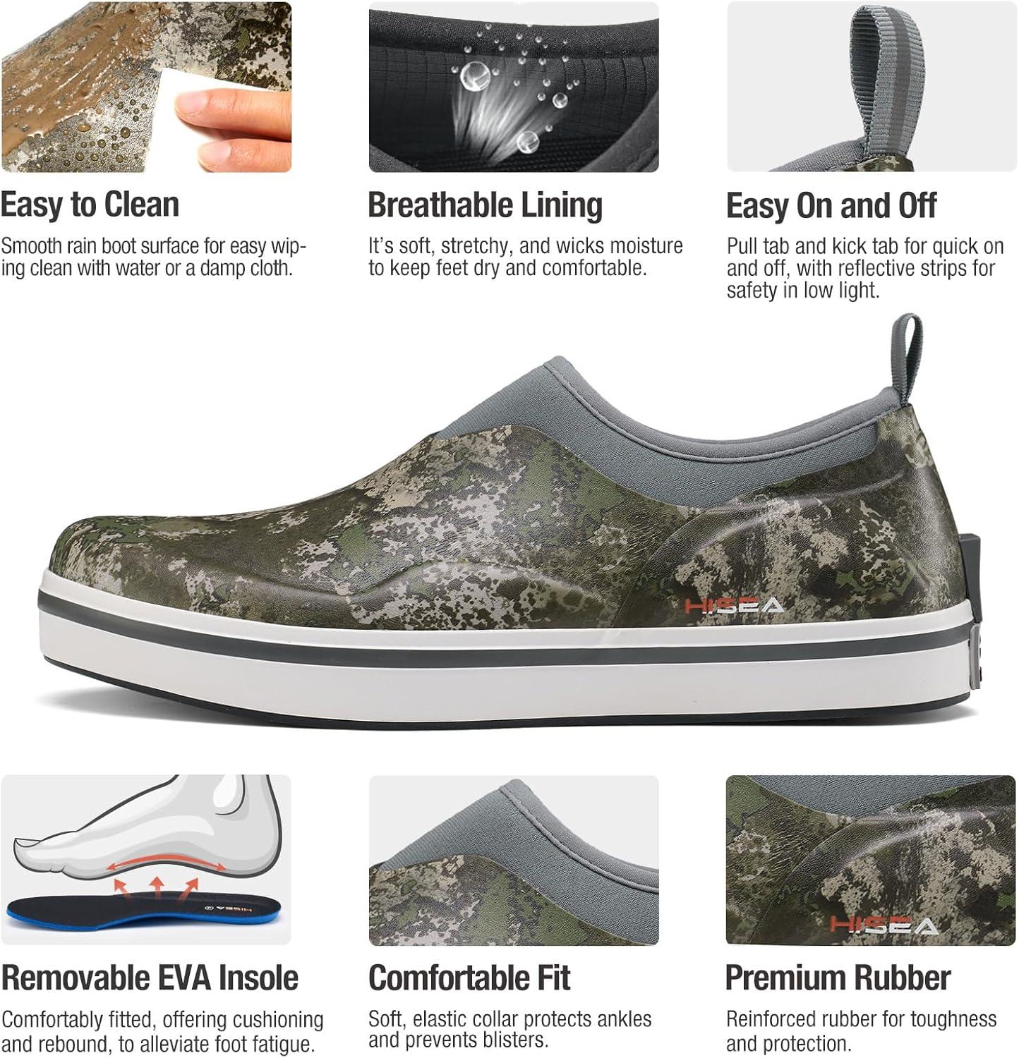 HISEA Men’s Deck Rain Shoes Waterproof Rain Boots Neoprene Mud Garden Shoes for Lawn Care, Gardening, Farming(Camo)