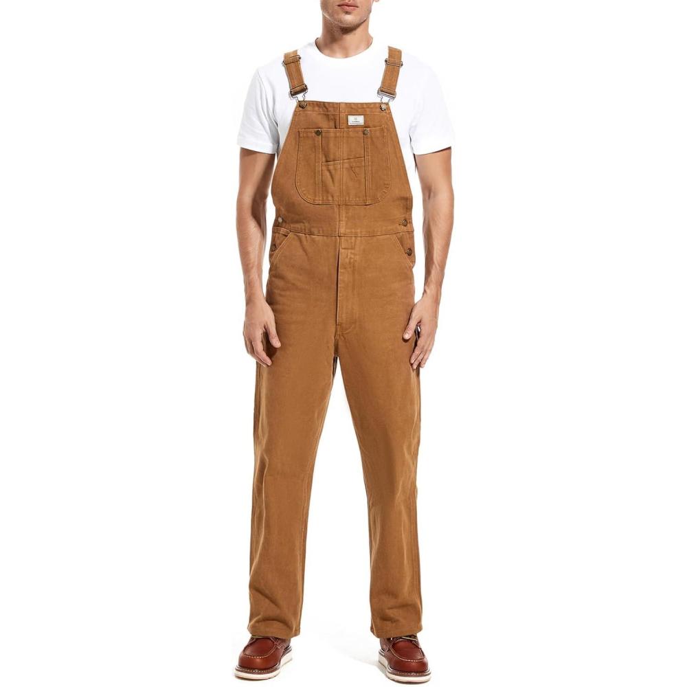 HISEA Men’s Denim Bib Overalls, Men’s Overalls Workwear with Adjustable Straps and Convenient Tool Pockets(Washed Brown Duck)