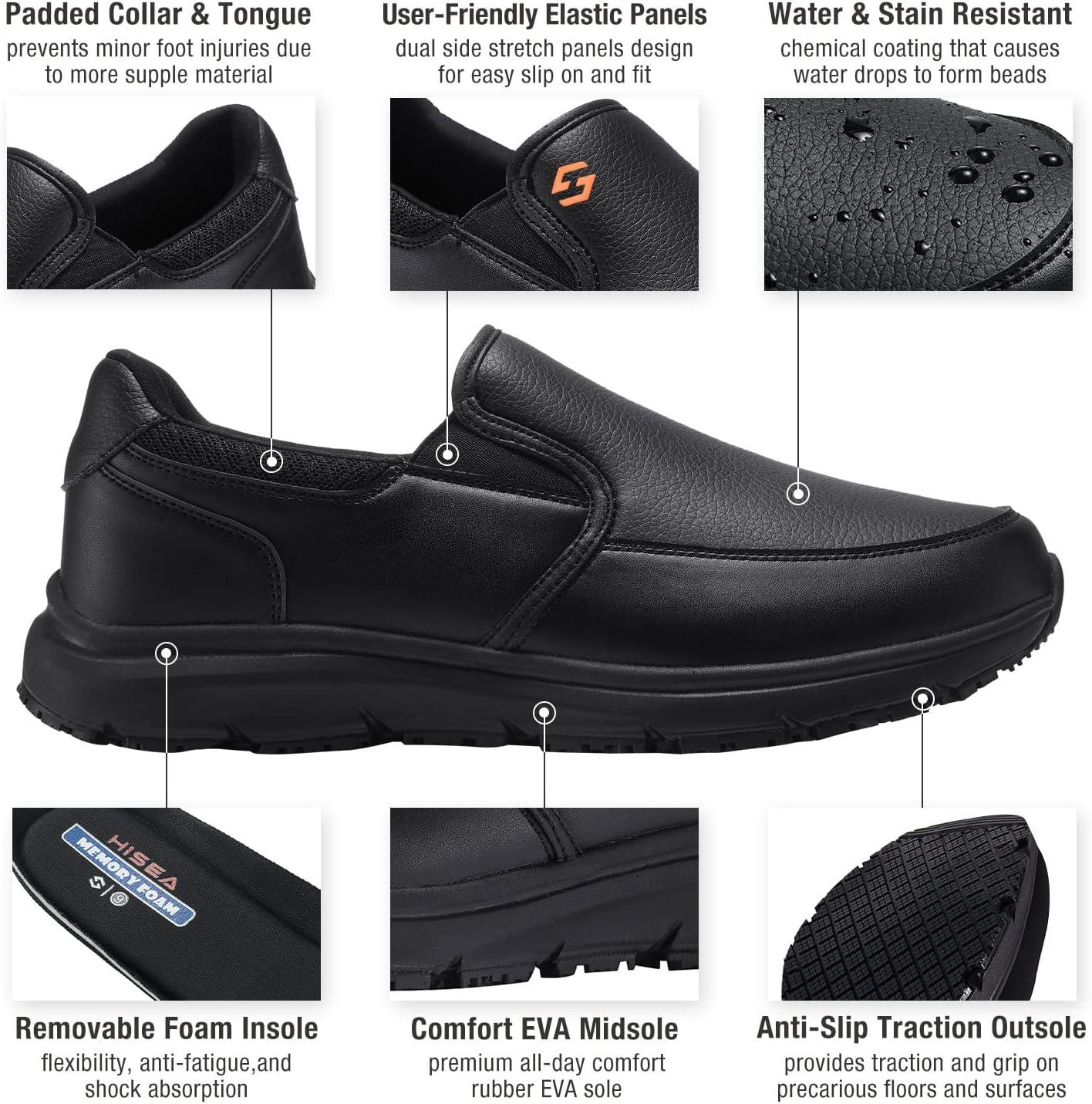 Score big on HISEA Men’s Leather Non Slip Food Service Shoes, Water & Oil Resistant, Comfortable, Breathable, Lightweight Slip Resistant Shoes for Men, for Kitchen, Restaurant, Slip-on Chef Walking Shoes(Black) and accessories during our BOGO sale. Buy one, get one 50% off!
