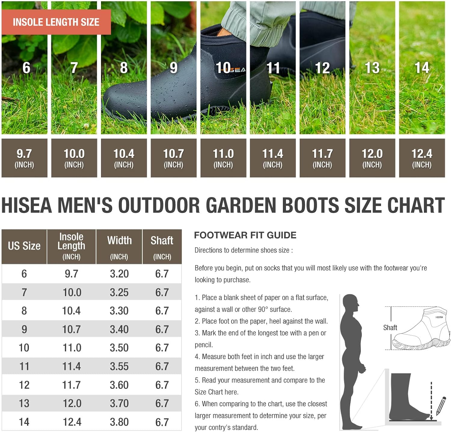 HISEA Men's Rain Boots, Ankle Height Garden Shoes Waterproof Rubber Neoprene Mud Boots Durable Insulated Short Outdoor Work Booties for Gardening Farming Camping Fishing and Yard Working