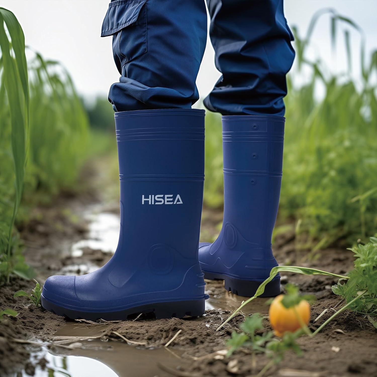 HISEA Men’s Rain Boots Waterproof Rubber Boots with Steel Shank Seamless PVC Rainboots Outdoor Work Boots Durable Slip Resistant Fishing Gardening Knee Boot for Agriculture and Industrial Working(Blue)