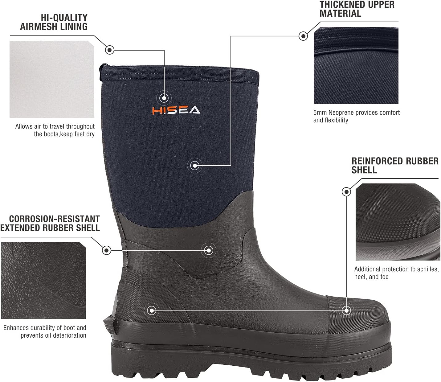 HISEA Men's Rain Boots Waterproof Work Boots Insulated Rubber Boot