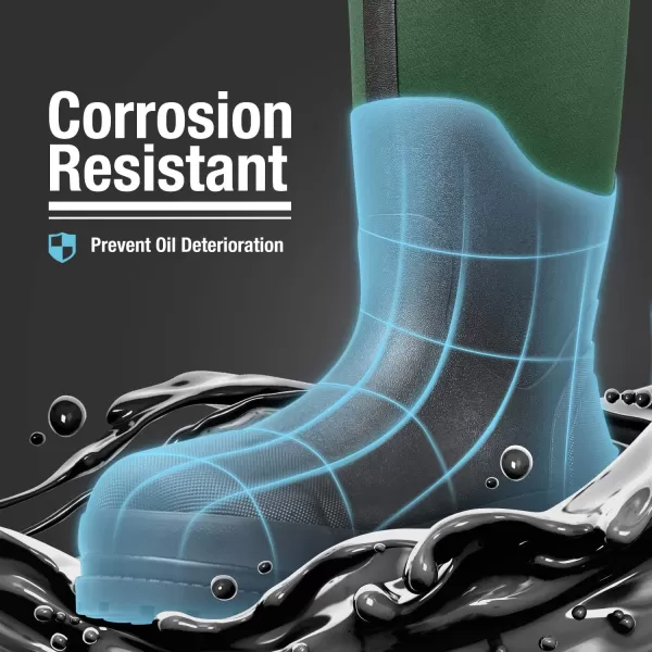 HISEA Men’s Rubber Rain Boots Waterproof Neoprene Work Boot for Mud Outdoor(Green)