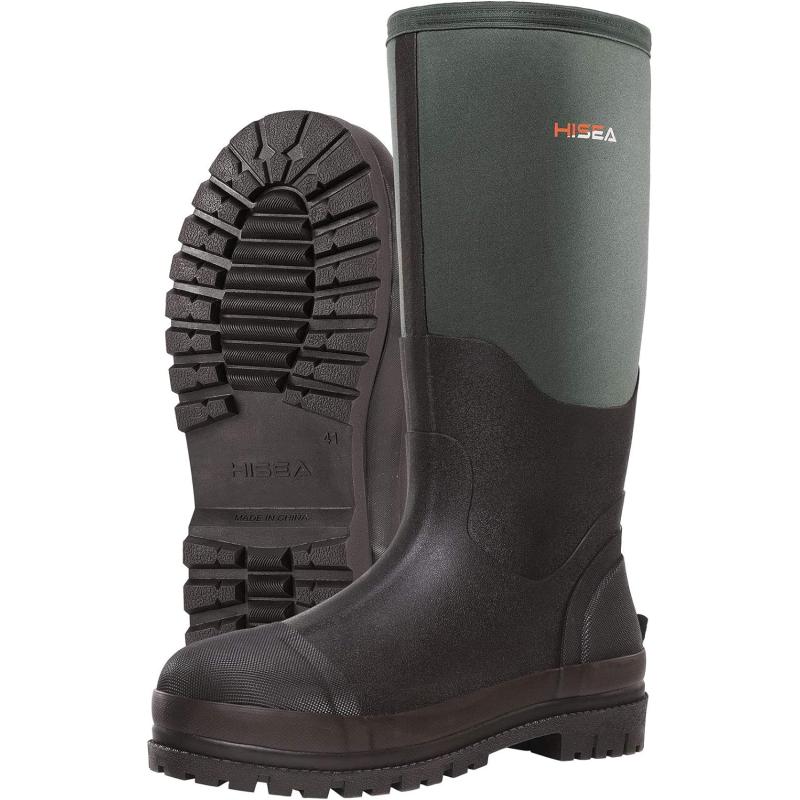 HISEA Men's Rubber Rain Boots Waterproof Neoprene Work Boot for Mud Outdoor