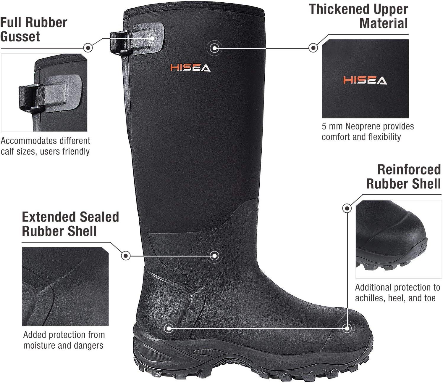 Get the HISEA Rubber Hunting Boots, Tall Warm Neoprene Waterproof Insulated Basic Hunting Boots, Mens Adjustable Winter Boots Durable Slip Resistant Outdoor Hunting Fishing Working Boots for Men(Black) you’ve been eyeing at a discounted price during our seasonal sale event.