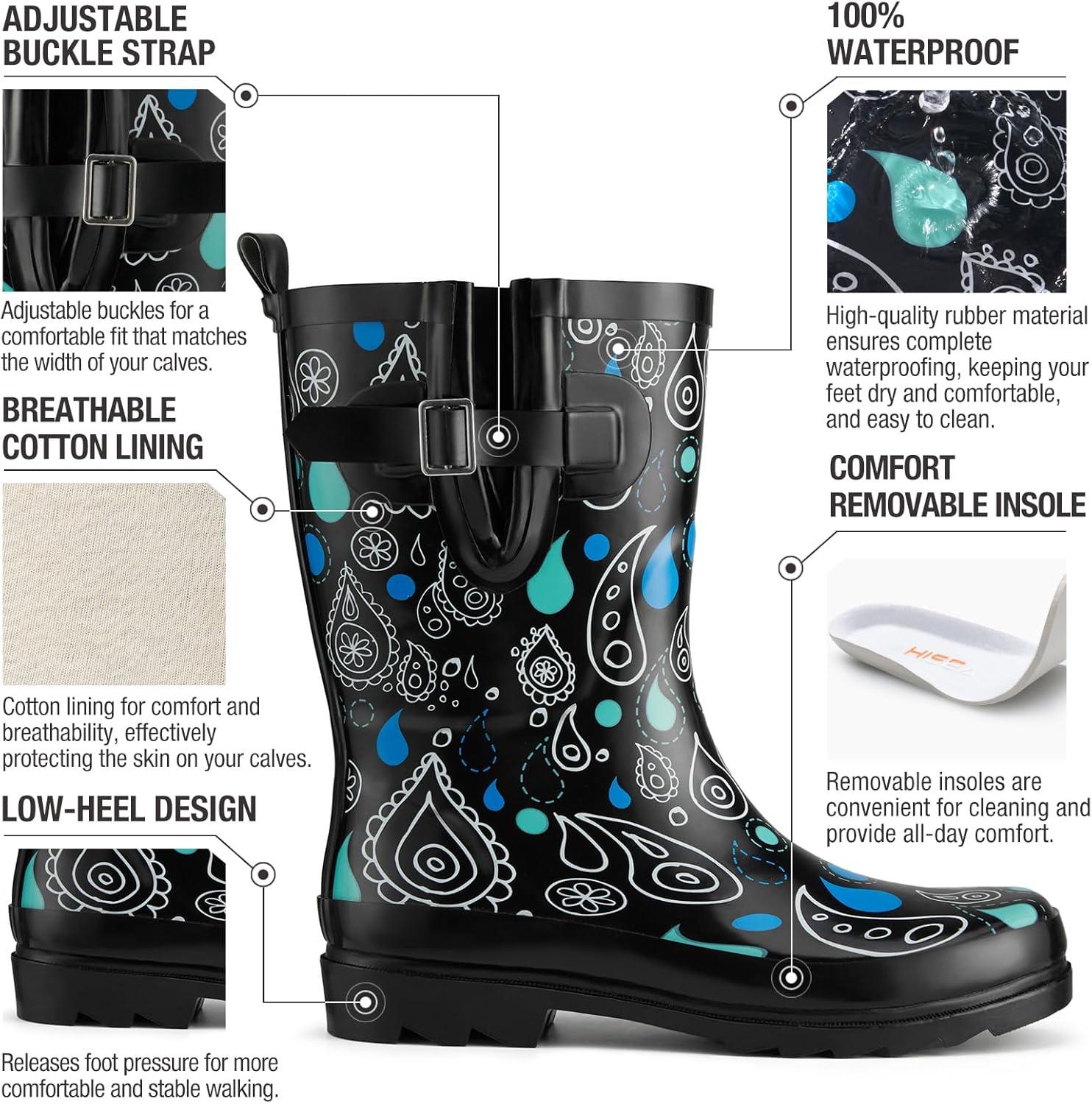HISEA Rubber Rain Boots for Women Waterproof Garden Mud Boots(Classic Paisley)