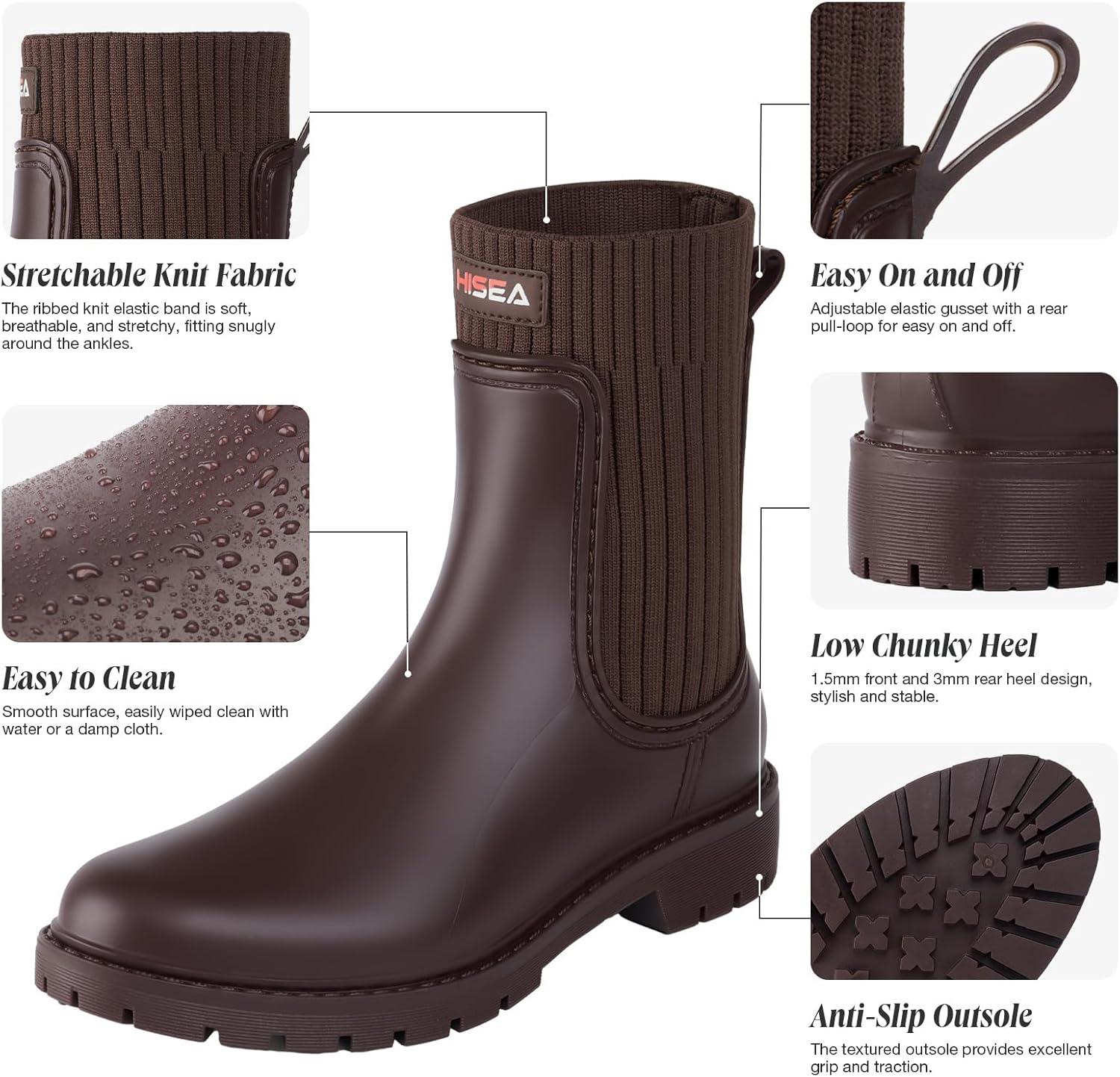 HISEA Short Rain Boots for Women Waterproof Chelsea Boots Rubber Garden Shoes for Ladies with Comfort Insole Lightweight Fashion(Brown)