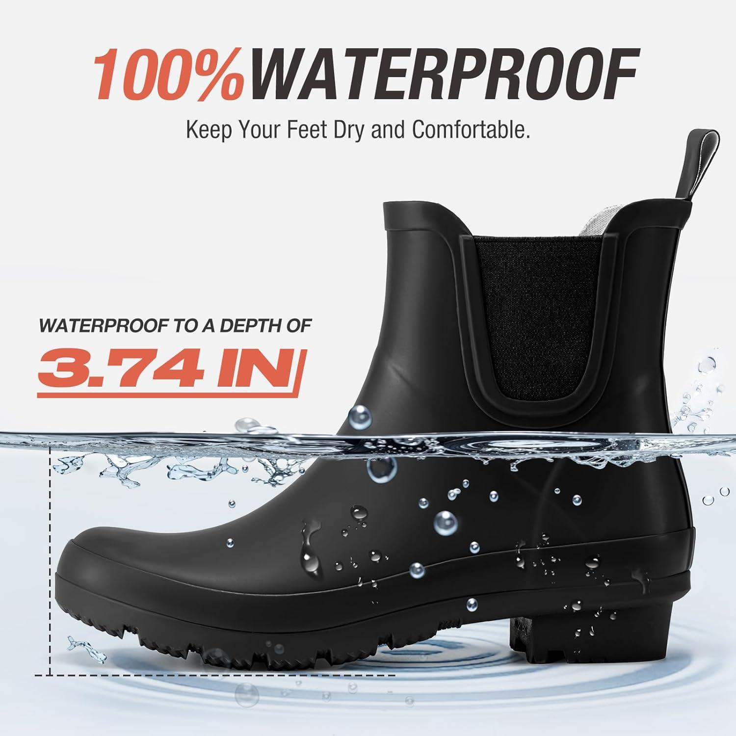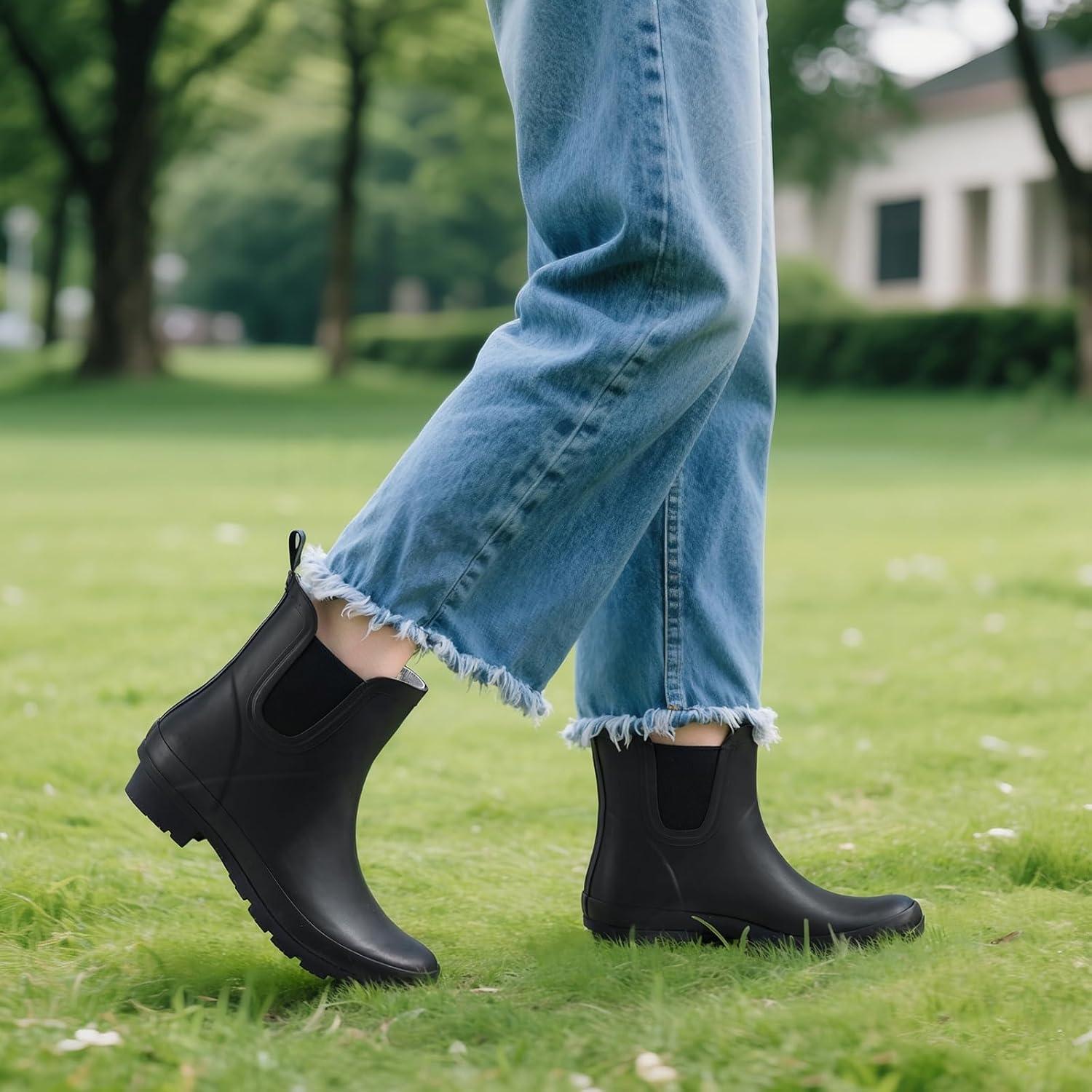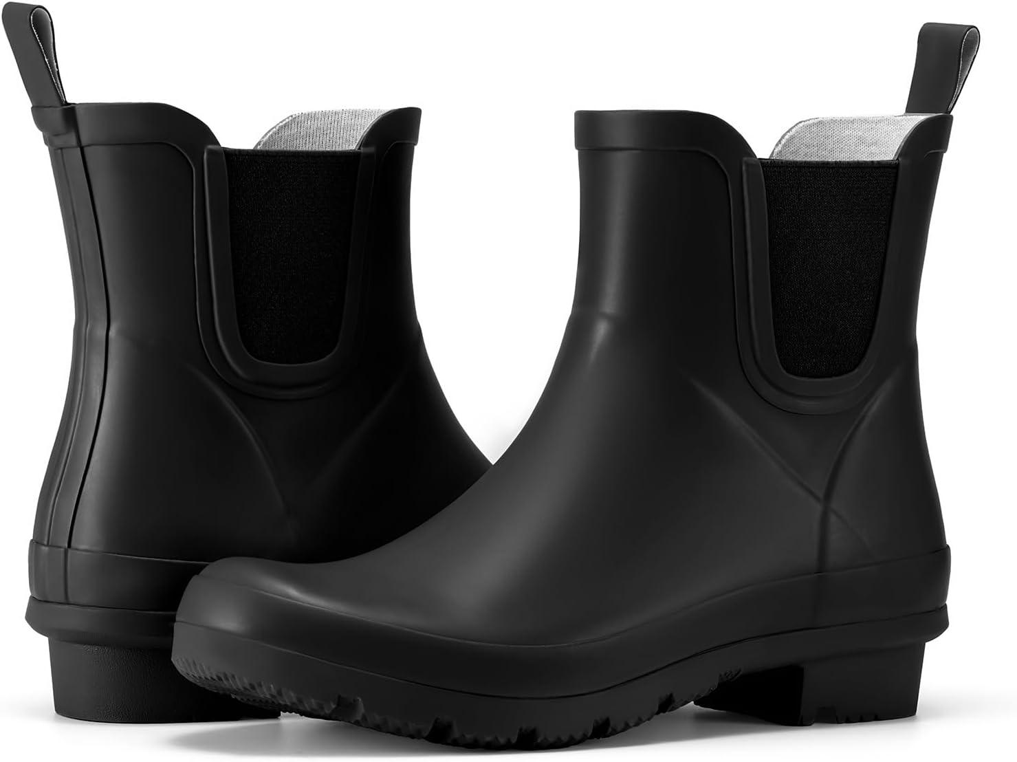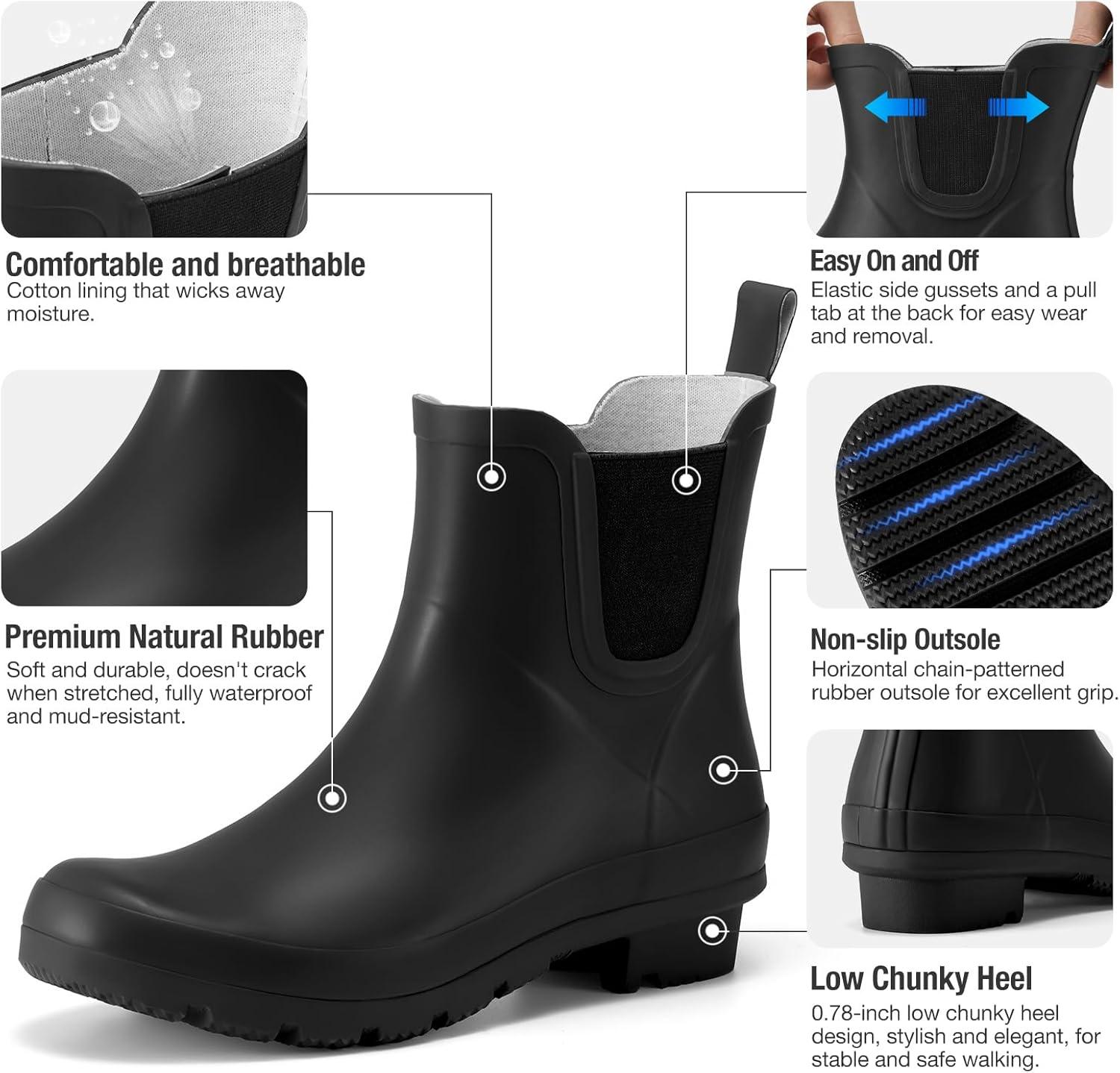 HISEA Ankle Rain Boots for Women Waterproof Chelsea Short Rubber Garden Shoes for Ladies Lightweight Fashion(Matte Black)