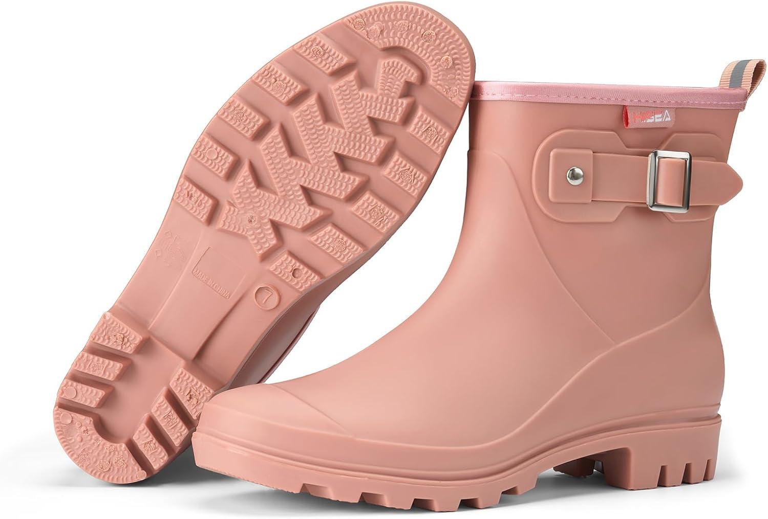 HISEA Women’s Ankle Rain Boots Waterproof, Fashion Short Garden Shoes Anti-slip for Women with Comfortable Insole(Black)