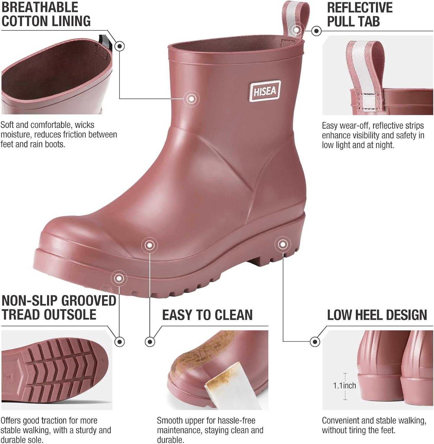HISEA Women’s Ankle Rubber Rain Boots Waterproof Short Chelsea Boots for Garden with Comfortable Insoles CHOOSE ONE SIZE UP