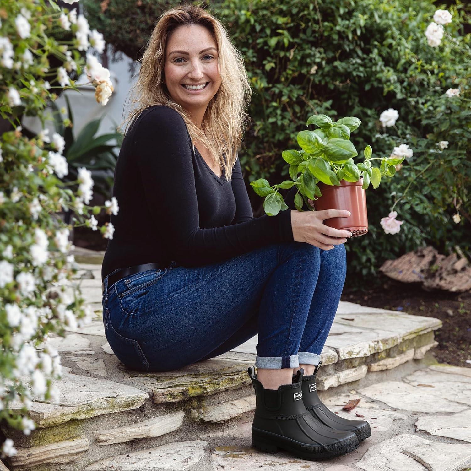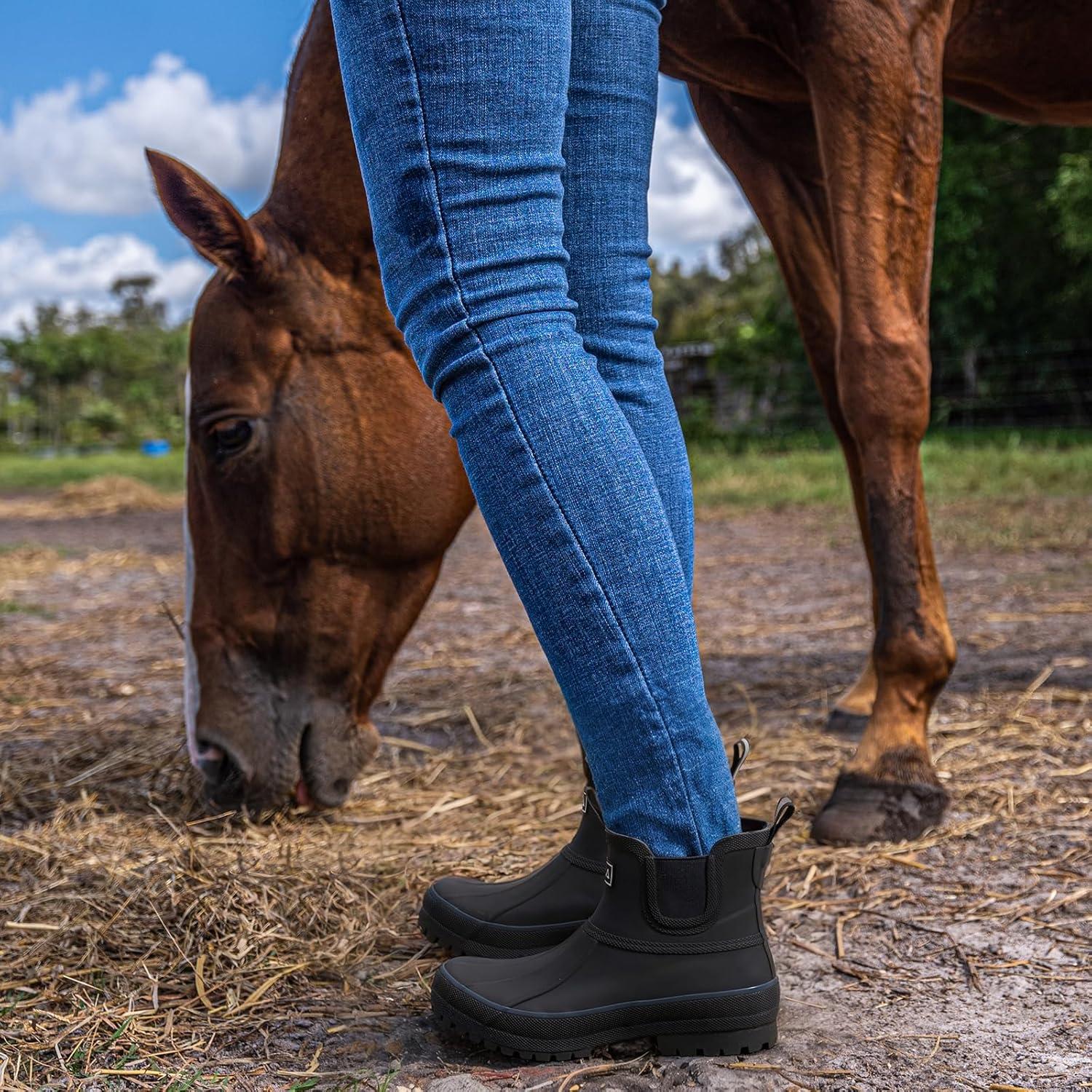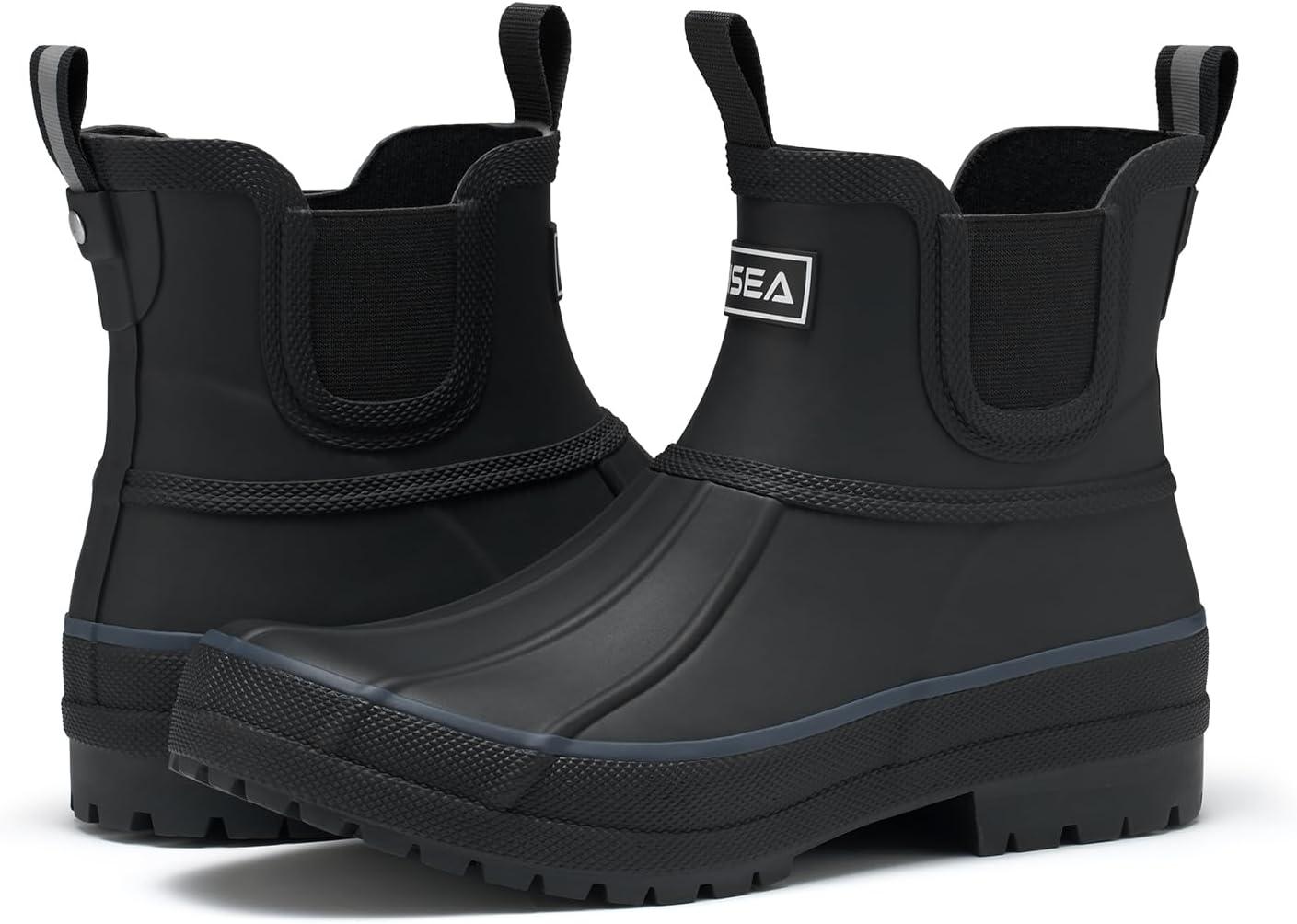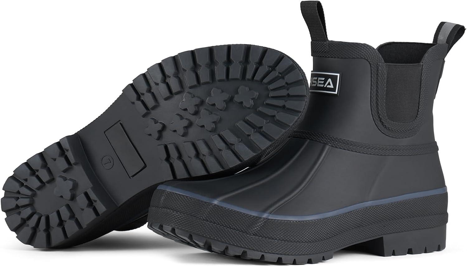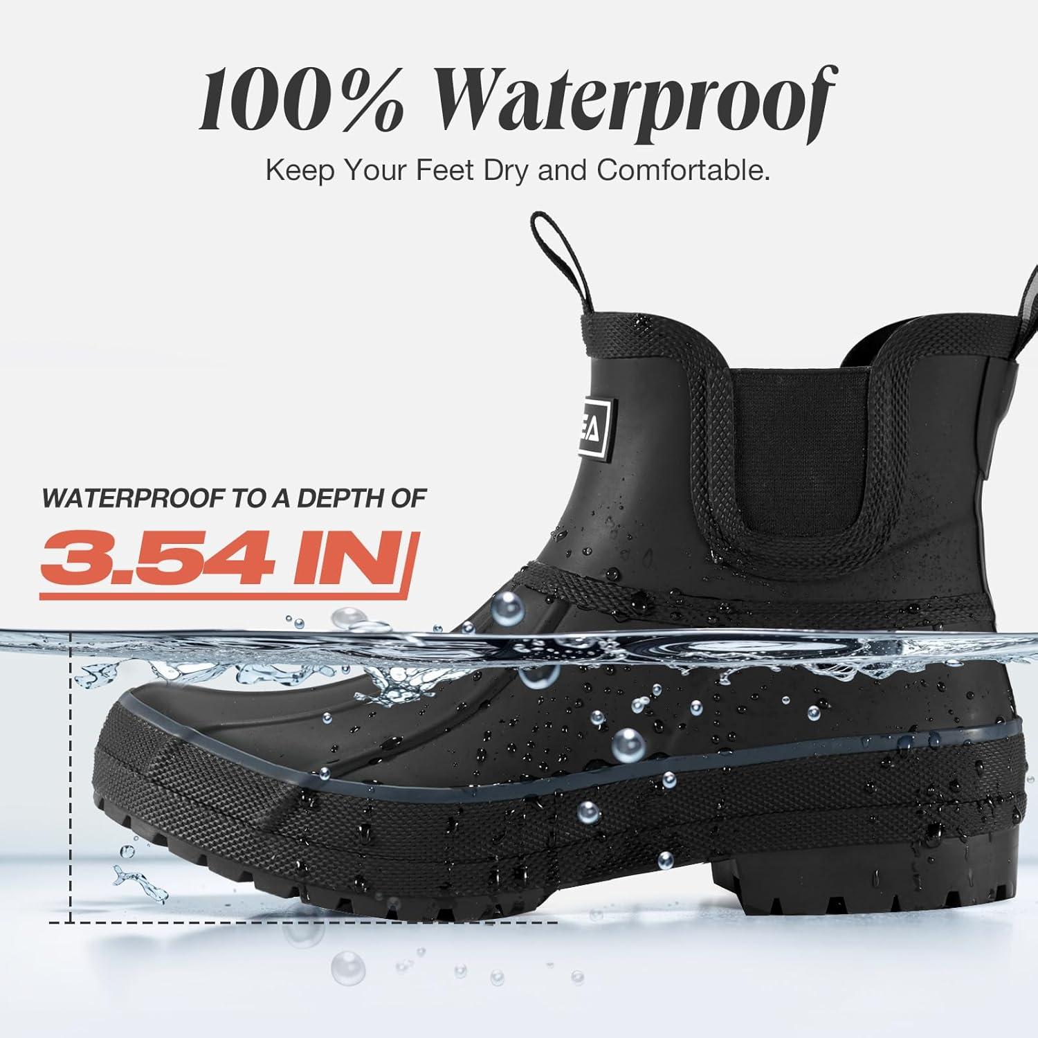 HISEA Women’s Duck Chelsea Rain Boots Waterproof Short Garden Boot Outdoor Mud Boots(Black)