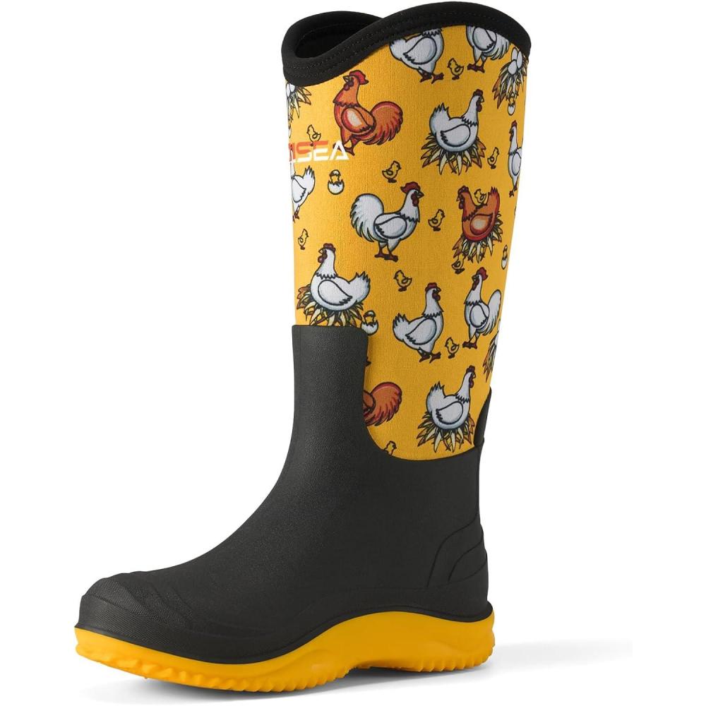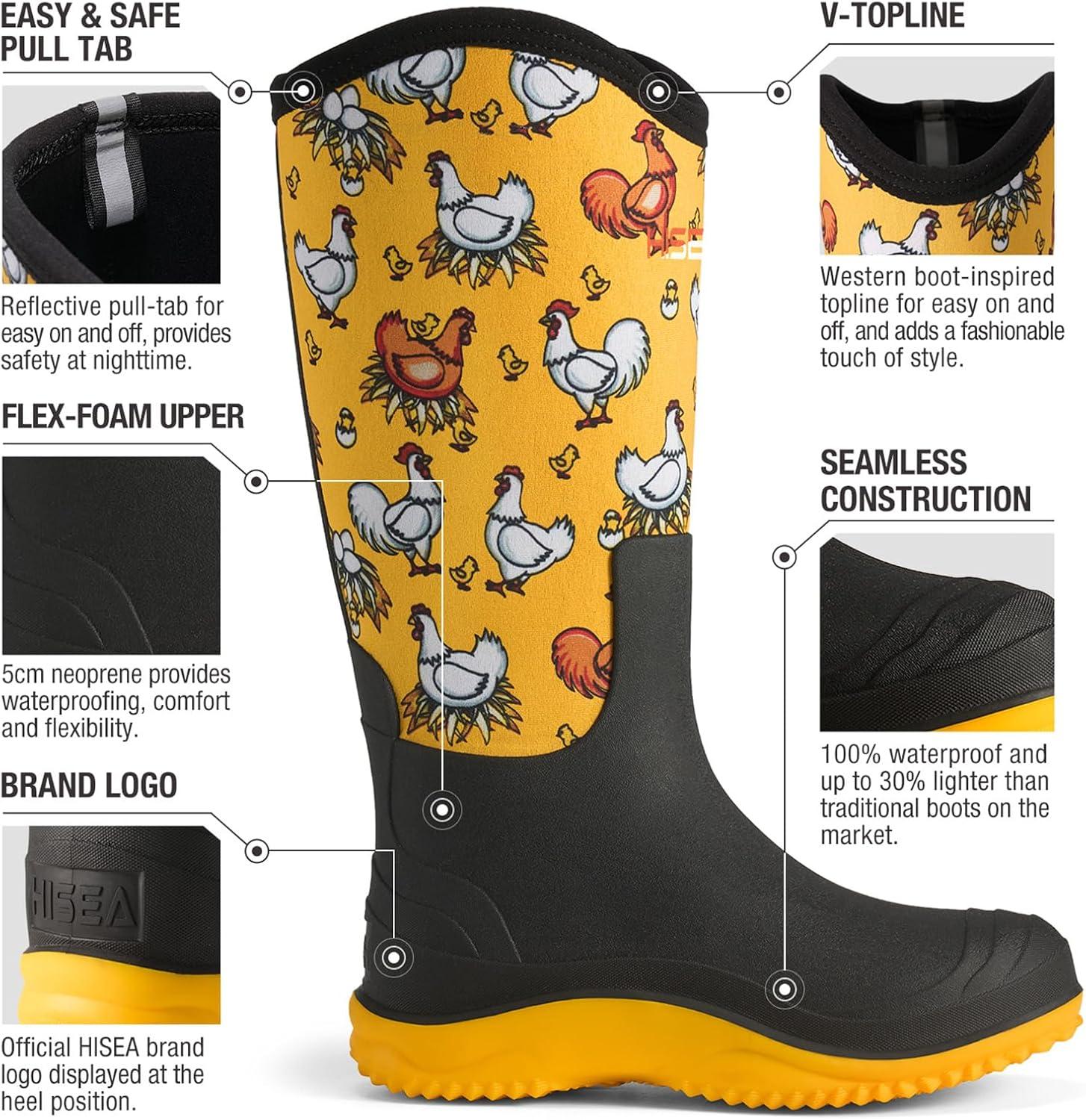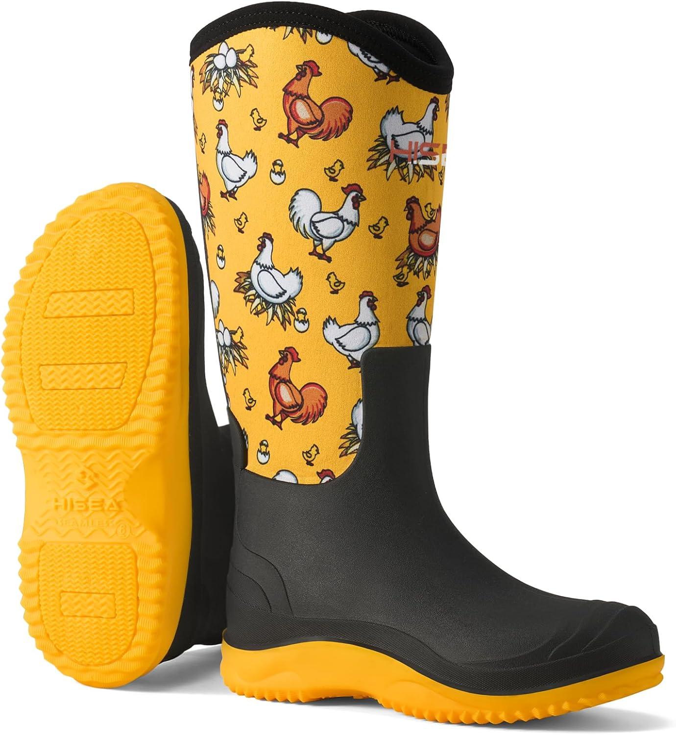 HISEA Women’s Mud Rain Boots, Waterproof Tall Garden Shoes, Insulated Neoprene Rubber for Outdoor Activities: Hunting, Gardening, Farming, Muddy Yard Work, Sizes US 6-11(Yellow Chicken)