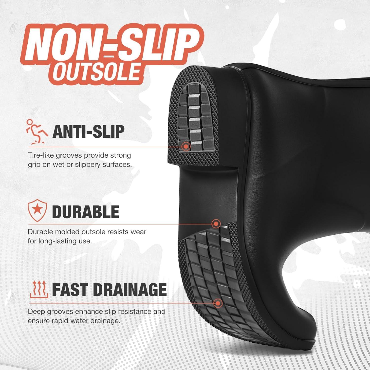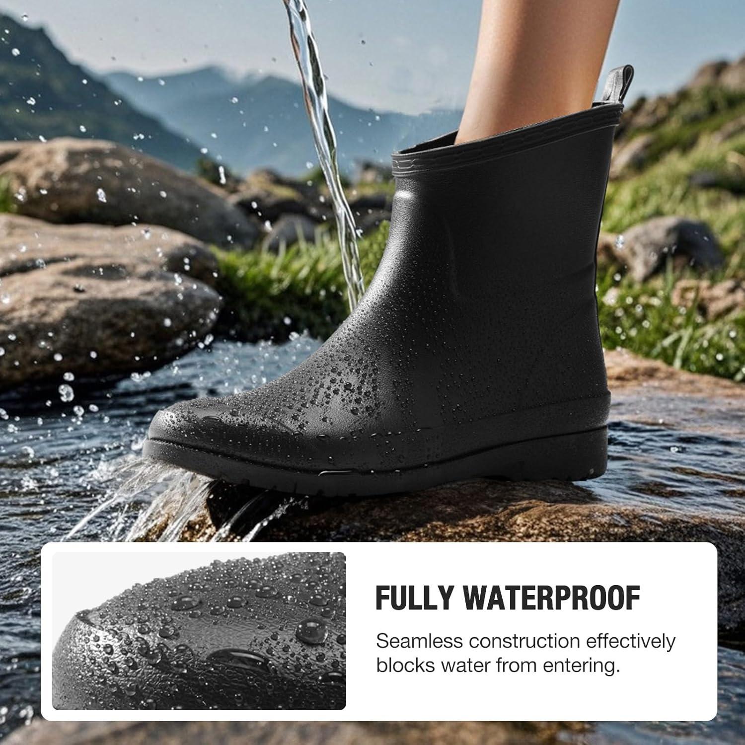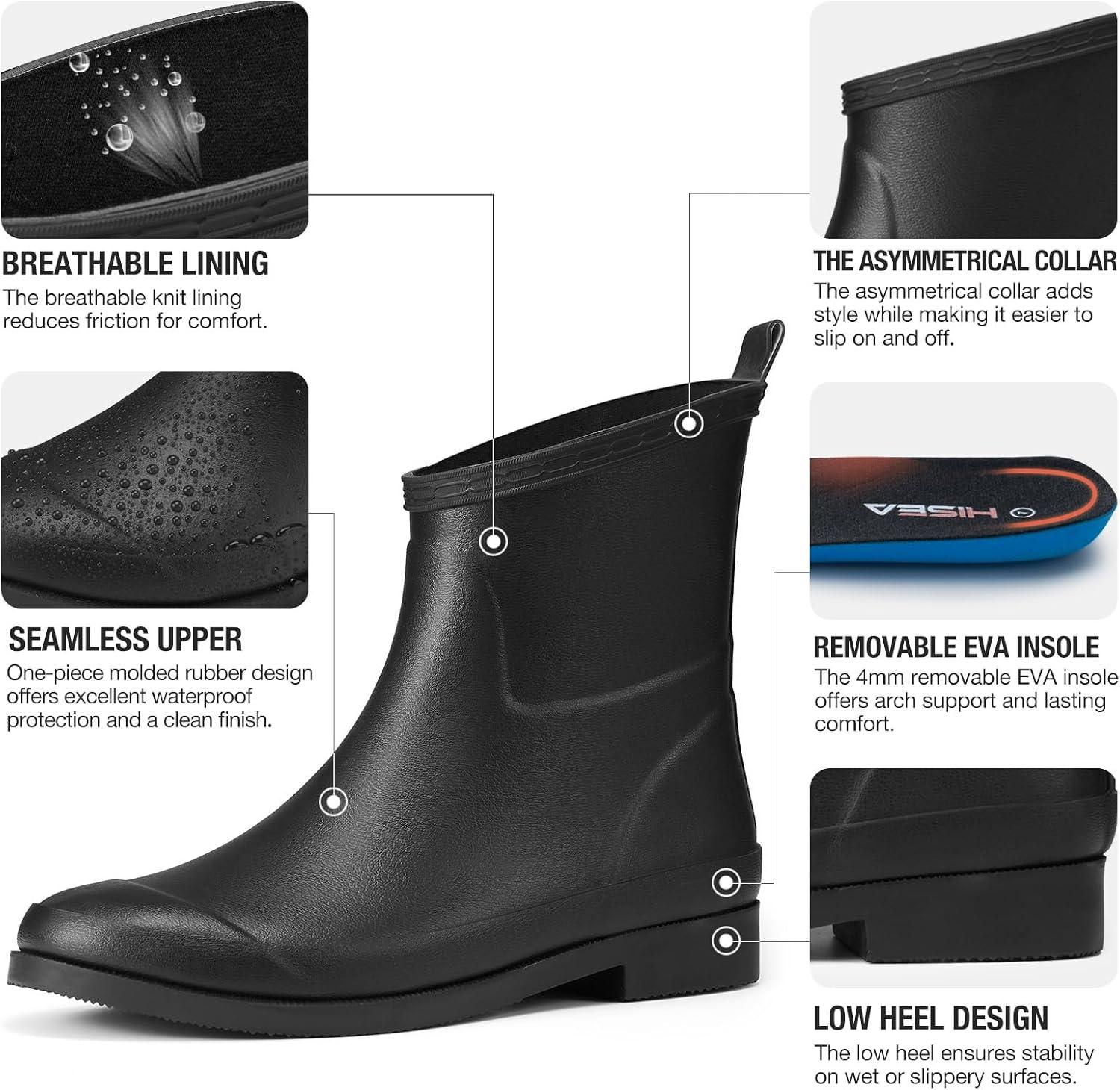 HISEA Women’s Rubber Rain Boots Ankle Garden Boots for Women Short Rubber Boot Outdoor(Black)