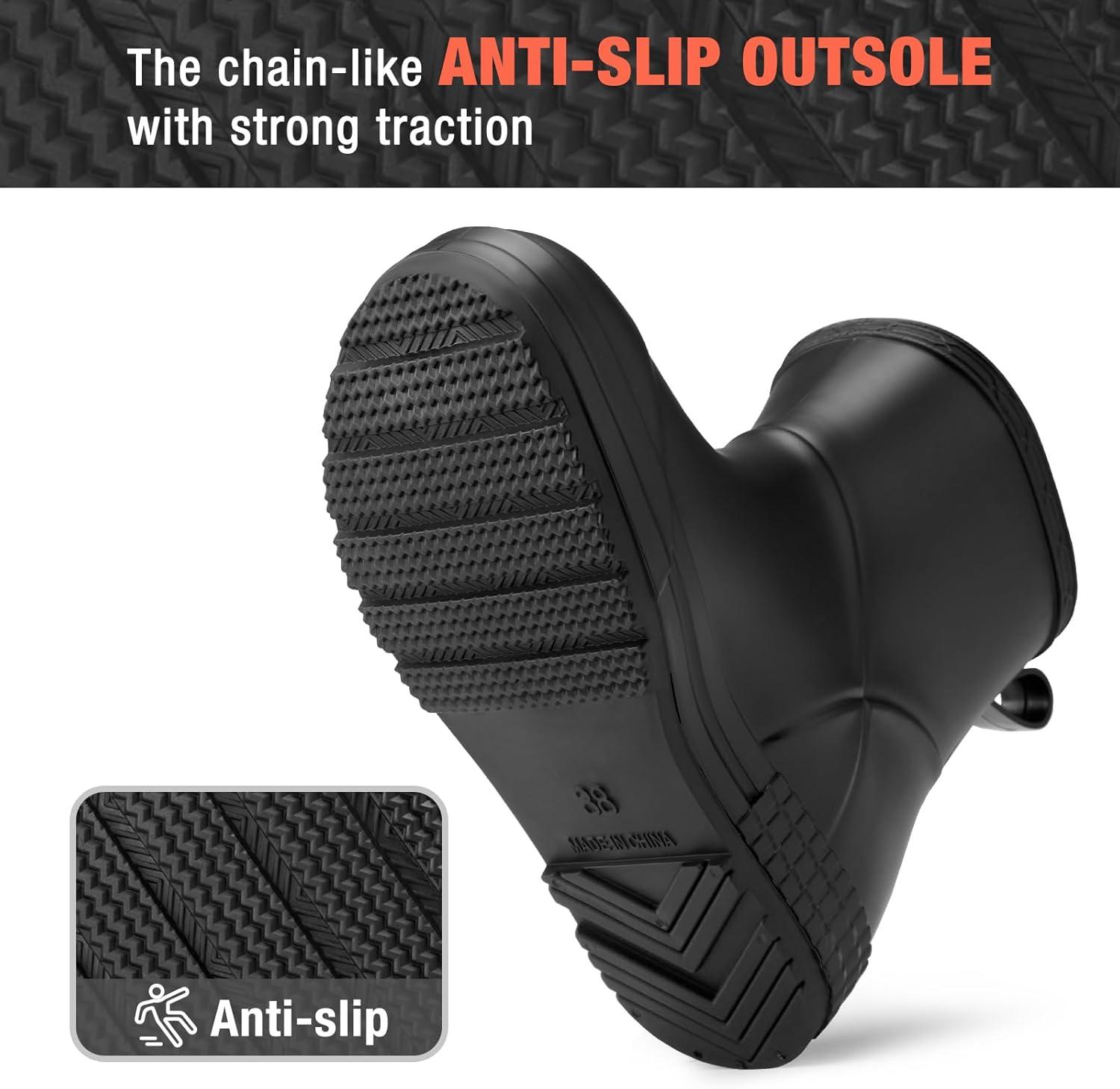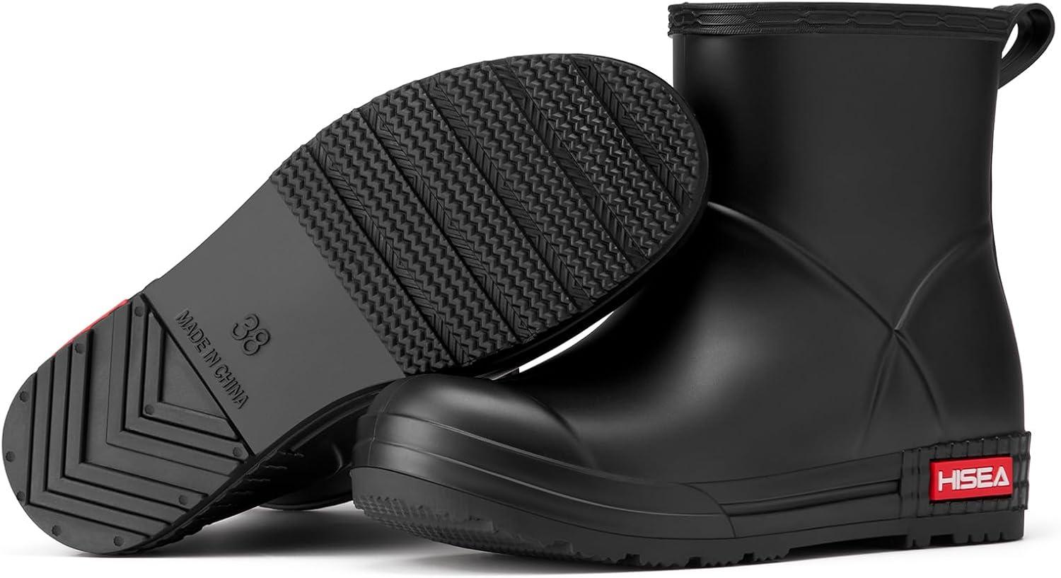 HISEA Women’s Short Chelsea Boots Ankle Rubber Rain Boots for Garden Waterproof(Black)