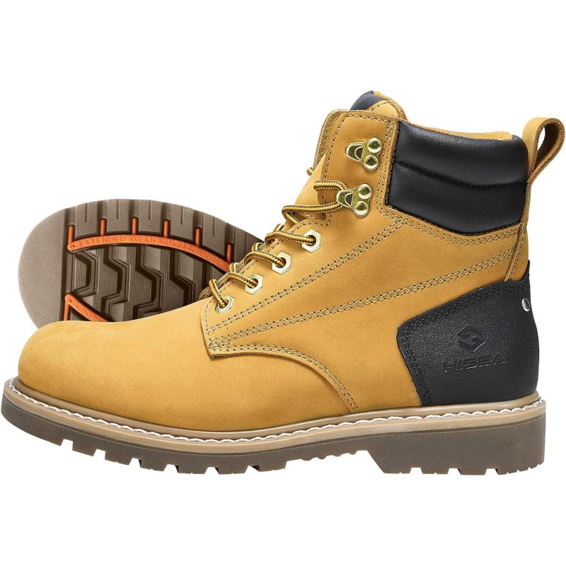 HISEA Work Boots For Men 6 inch Soft/Steel Toe Leather Boots Round-Toe Safety Slip Resistant Construction Work Boots(Soft Toe-wheat)