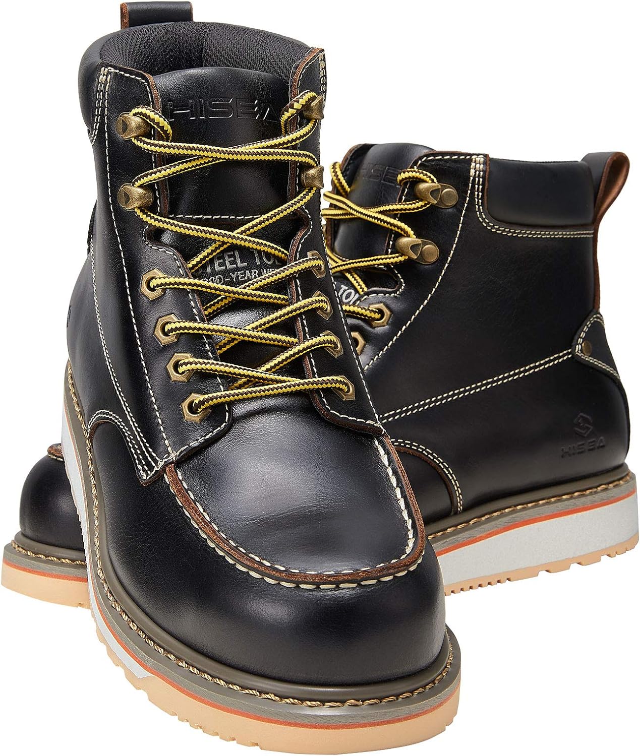 HISEA Work Boots for Men Steel/Soft Toe Boots,6‘’ Waterproof Slip Resistant Industrial & Construction Work Boots